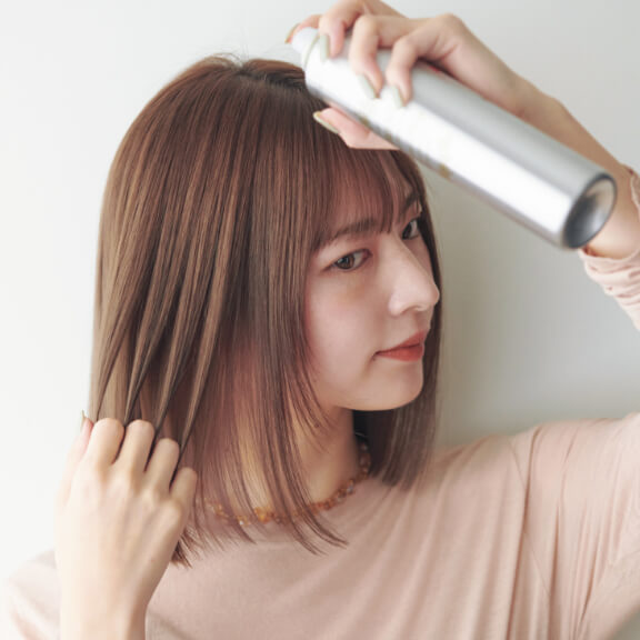 夏の紫外線をくぐり抜けた髪に、落ち着いたブラウンでツヤをプラス。顔まわりに入ったレイヤーが、揺れる髪を表情豊かに演出。