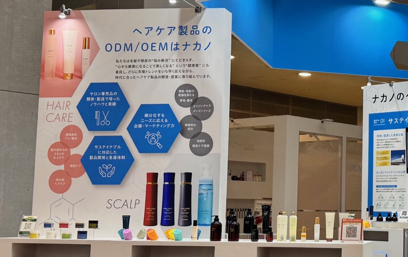 ここでは、ブース内で紹介したナカノ式ODM/OEMの特長や最旬の取り組みなどをご紹介します。