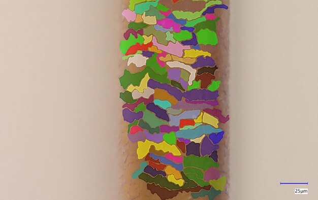 毛髪表面の画像をAIが解析し、キューティクルの輪郭を識別。重なり枚数を高精度に推定可能に。
