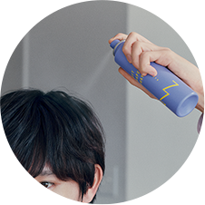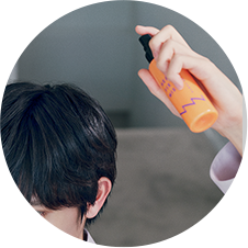 スタイリング前の髪に適量(3~4プッシュ)を噴霧し、手ぐしやコームで均一になじませます。